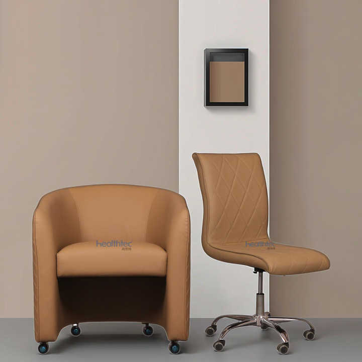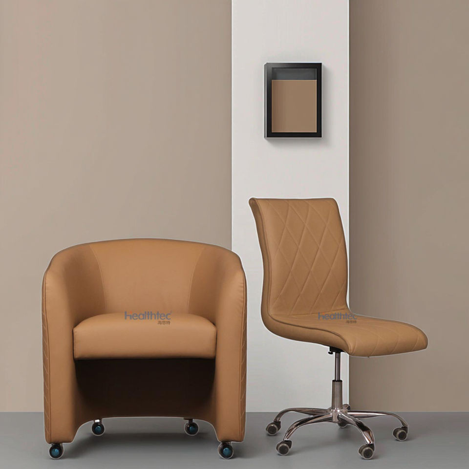 Chaises de tabouret de technicien de pédicure à gaz rotatives réglables en cuir PU marron haut de gamme avec roues