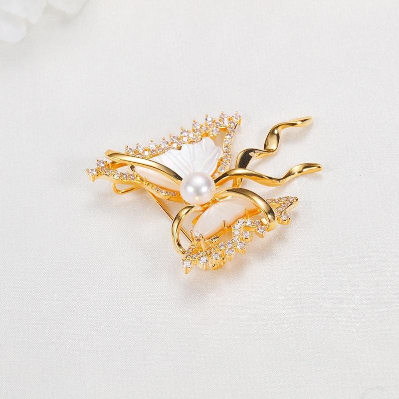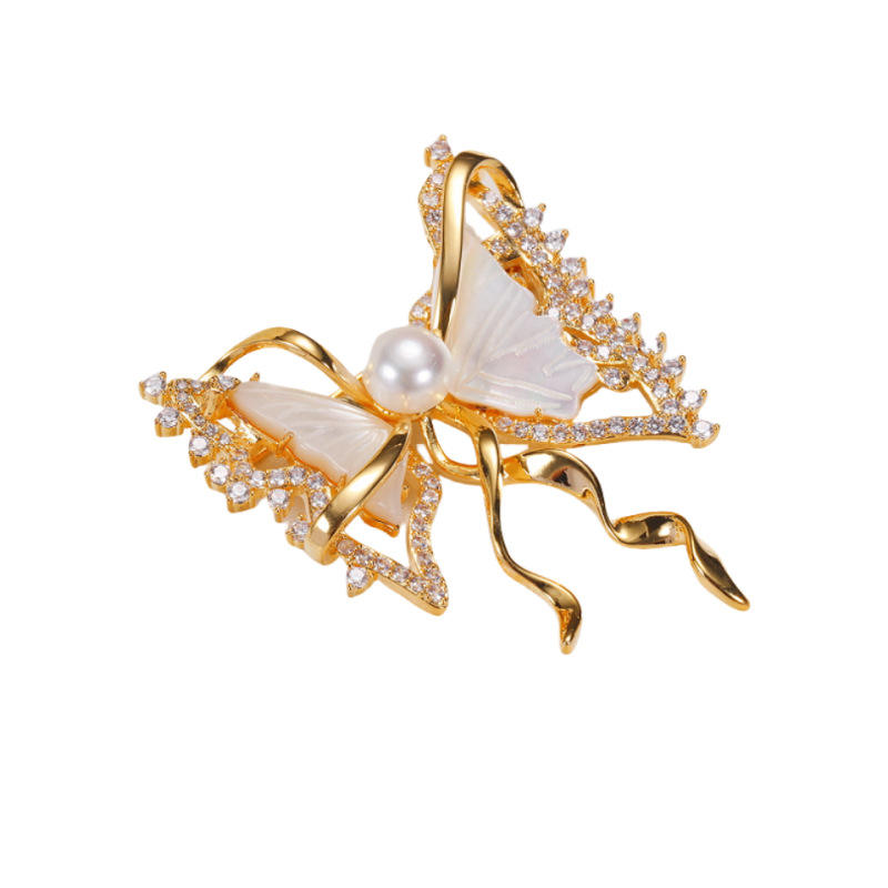 Broche de luxe en perles d'eau douce papillon haut de gamme, anti-éblouissement, simple, avec motif numérique