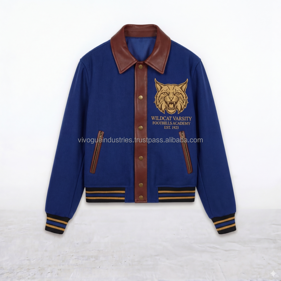 Blouson Bomber Haut de Gamme en Chenille avec Patchs, Boutons Contrastants, Blousons de Marque Style Universitaire, Blousons de Baseball pour Équipes