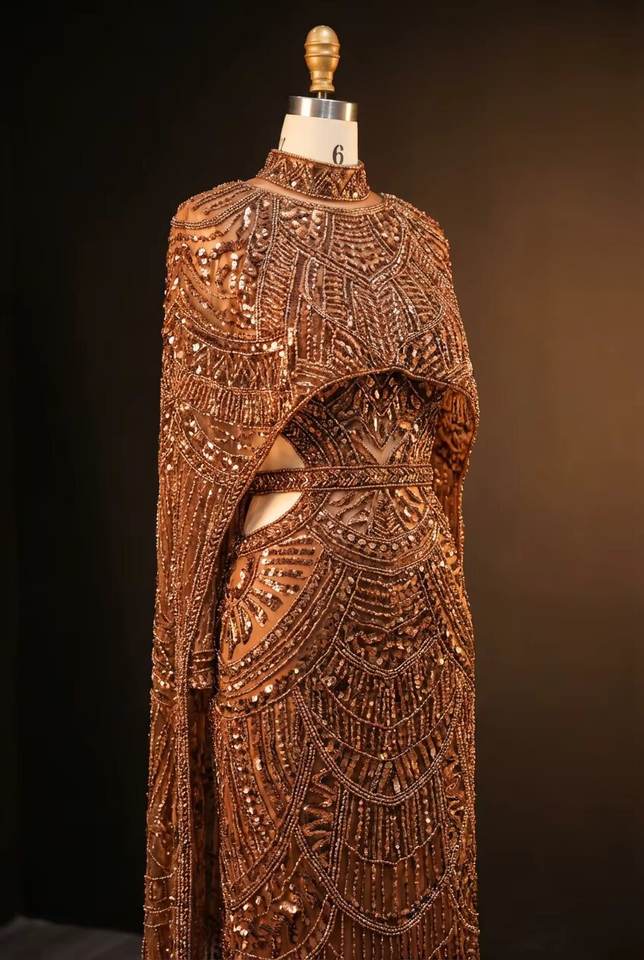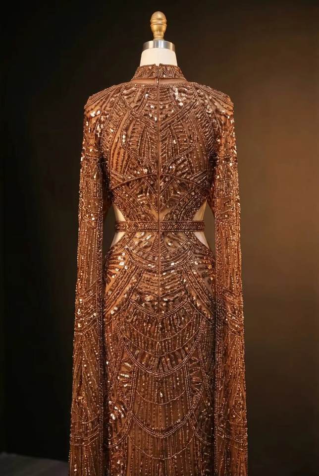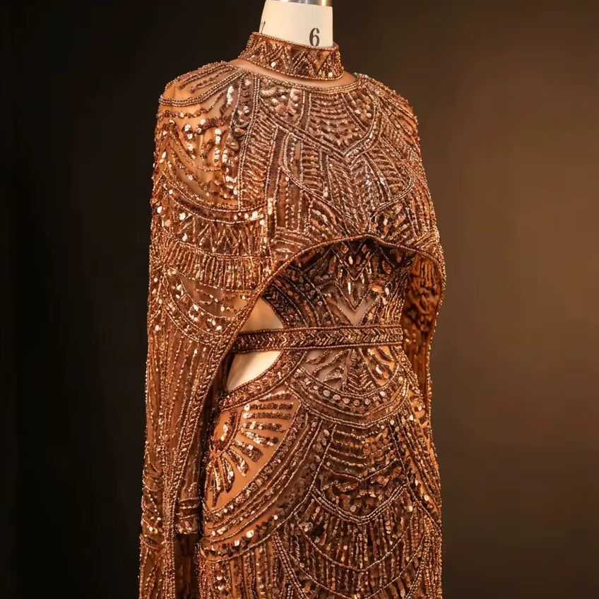 Robe de bal sirène haute couture brodée, richement perlée à la main, pour occasions formelles, motif géométrique, tenue de soirée