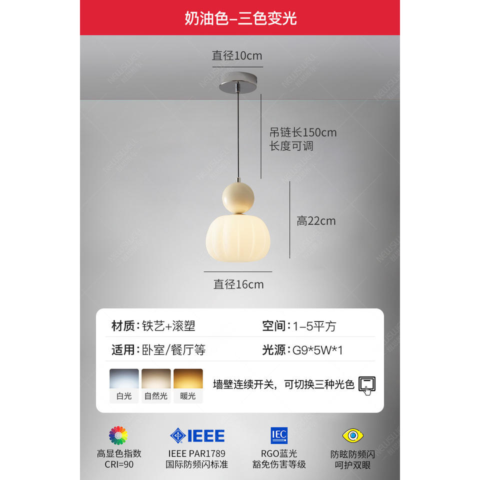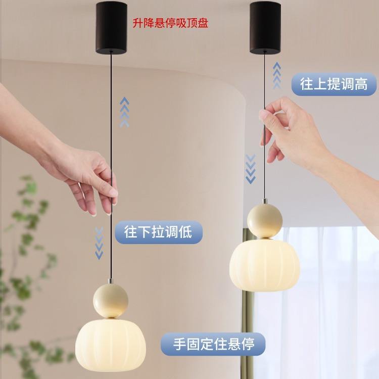 Luminaire suspendu à tête unique de couleur crème haut de gamme, design tendance et relevable, pour chambre à coucher, salle à manger, décors minimalistes