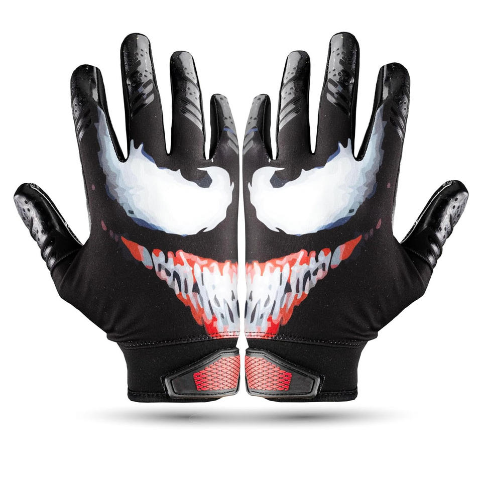 High-End Custom Logo Football Receiving Gloves with Non-Slip Silicone Printing Spandex/Polyester Material 100% QC Inspection