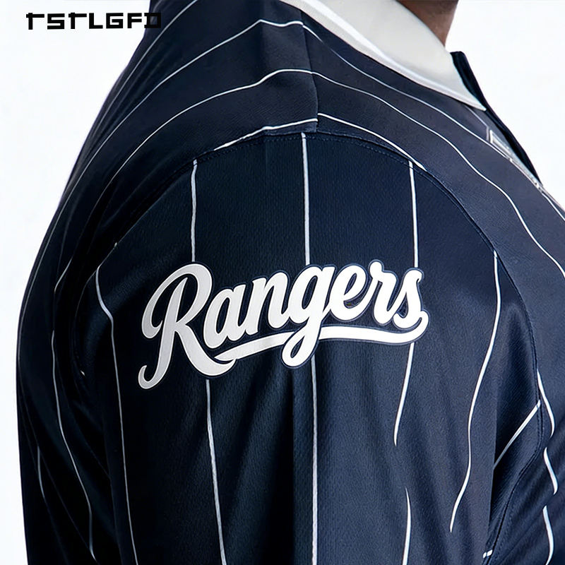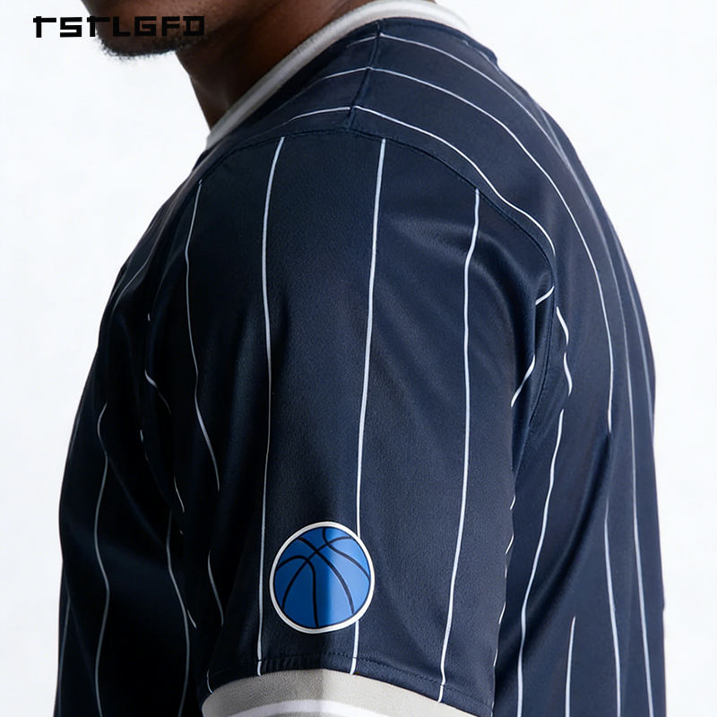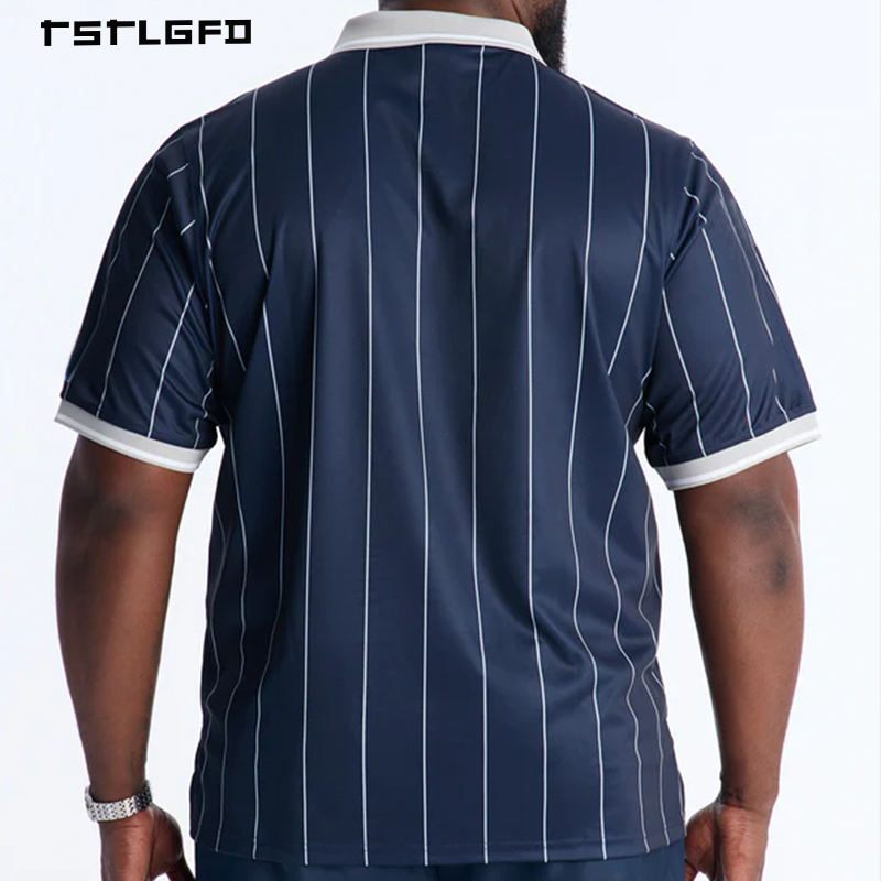Polo pour hommes haut de gamme personnalisé à rayures fines marine, en polyester à séchage rapide, avec impression graphique, style athlétique vintage, OEM/ODM