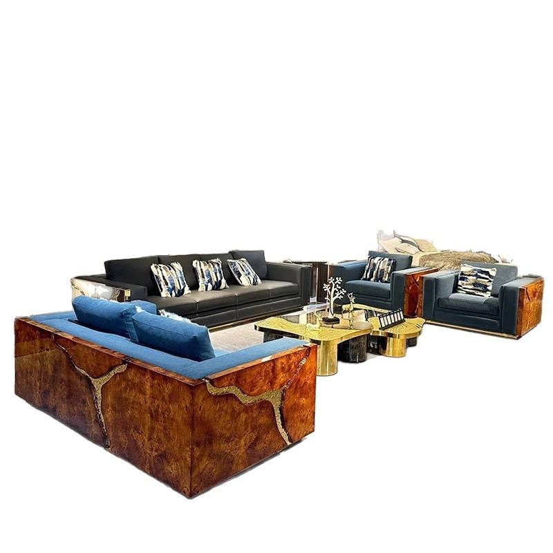 Canapés de villa royale sur mesure haut de gamme, canapé de luxe 3 places, suite de salon, canapé sectionnel en cuir véritable, meubles de salon