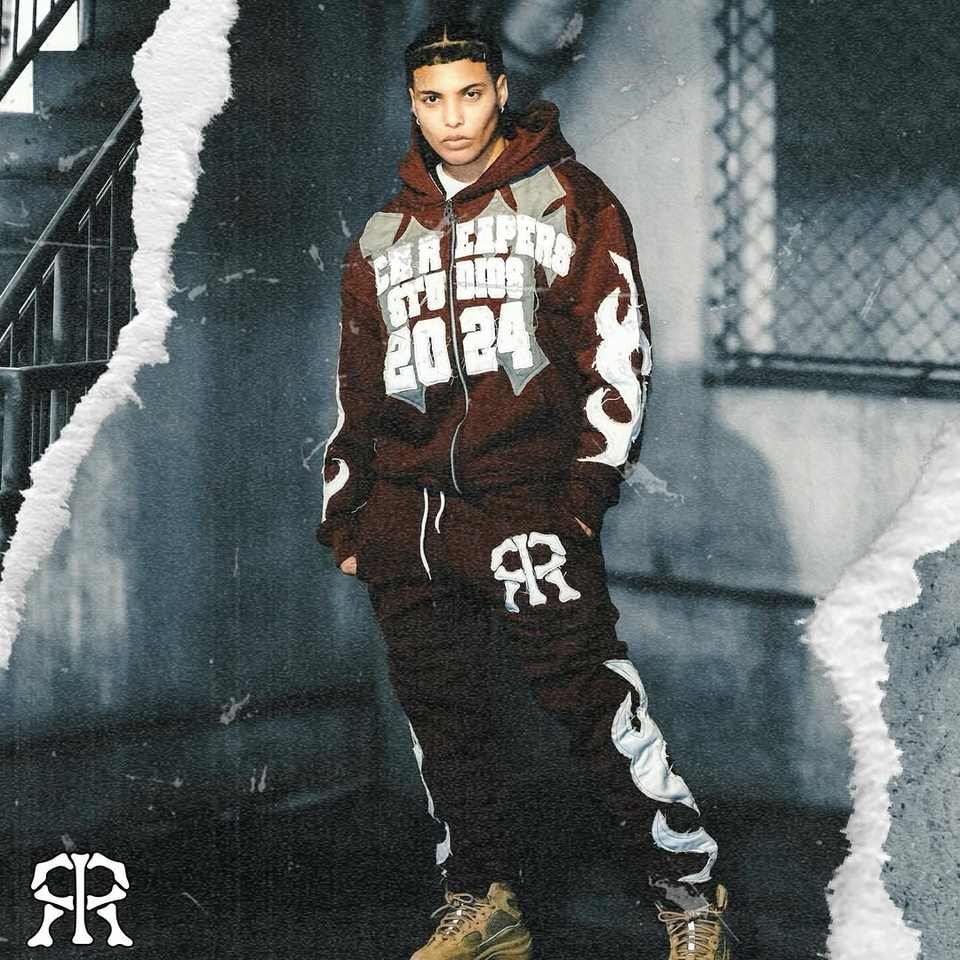 Survêtement personnalisé haut de gamme pour hommes et femmes 100% coton sweat à capuche zippé avec broderie et pantalons de survêtement évasés délavés au soleil