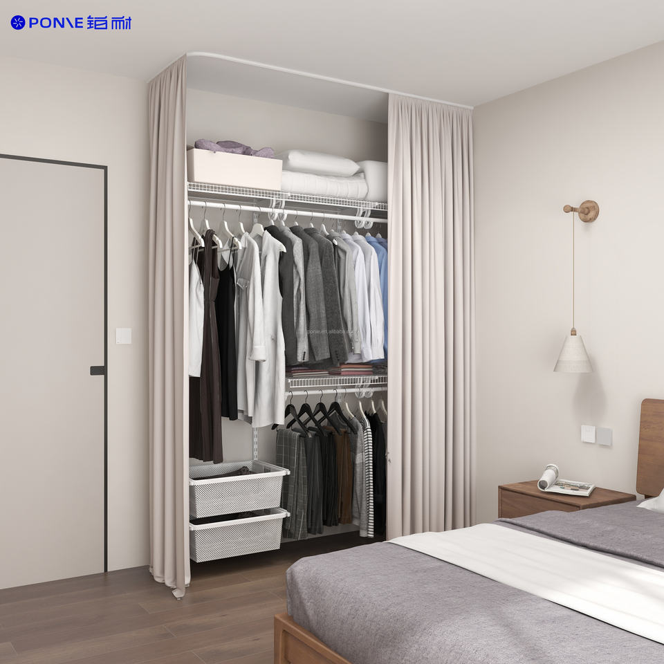 Haut de gamme personnalisable promenade dans le placard garde-robe fil étagère organisateur anti-poussière réglable plusieurs couleurs rideaux