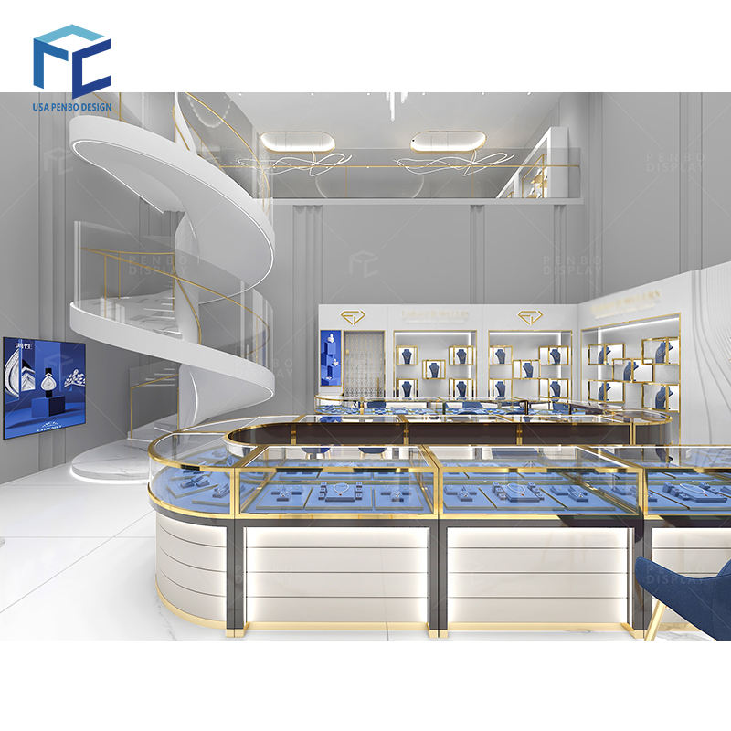 Vitrine de présentation de bijoux en verre circulaire personnalisée haut de gamme avec service de conception rapide de couleur et de taille personnalisées pour les salles d'exposition de vente au détail de luxe