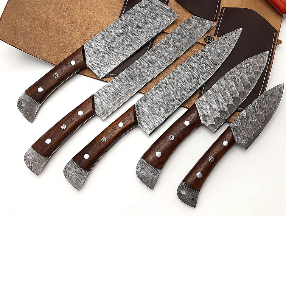 Ensemble de couteaux de cuisine haut de gamme en acier Damas avec une construction robuste et une maniabilité fluide pour les passionnés de cuisine