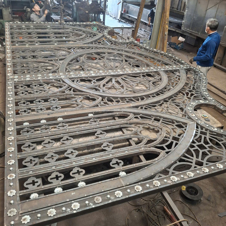 Portail décoratif haut de gamme en fer forgé, finition dorée, motif islamique, pour villa de luxe, fabriqué au Vietnam