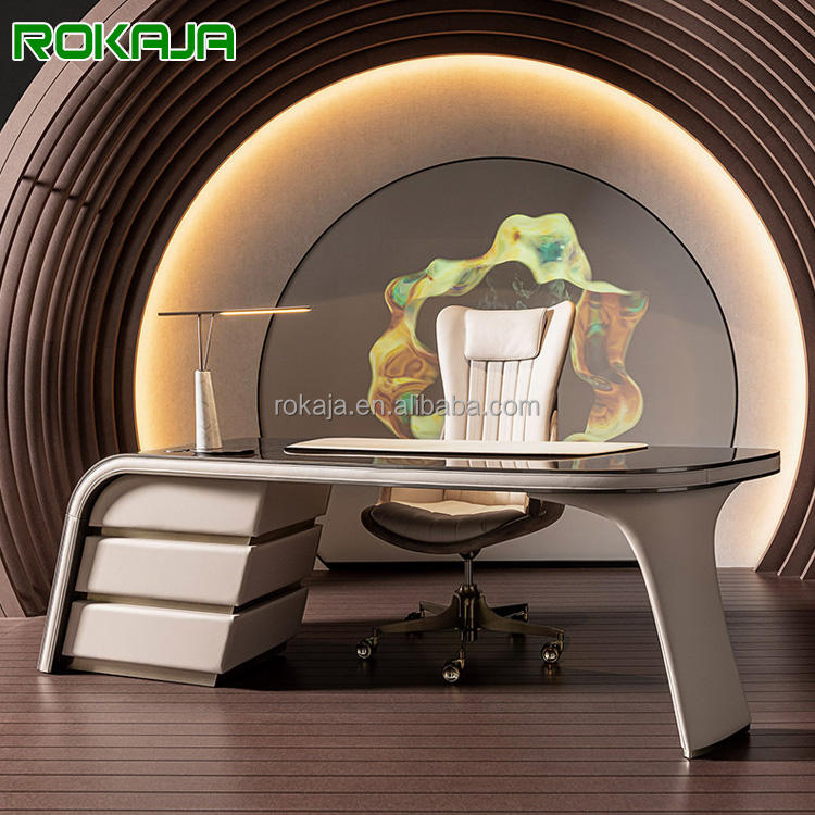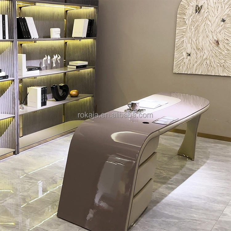 Table de bureau Design haut de gamme italie cuir Piano peinture bois massif patron bureau luxe moderne créatif en forme spéciale bureau d'ordinateur
