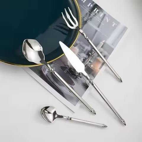 Ensemble de couverts en métal haut de gamme, cuillère, fourchette, couteau en acier inoxydable, ensemble de couverts élégants pour la cuisine et la table