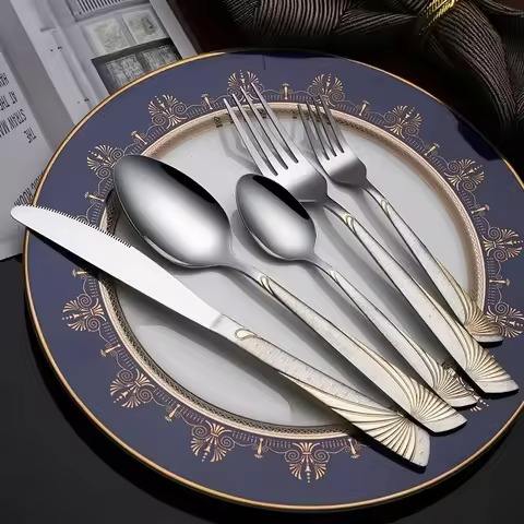 Ensemble de couverts de table haut de gamme en métal, cuillère, fourchette, couteau en acier inoxydable, ensemble de couverts élégant pour la cuisine
