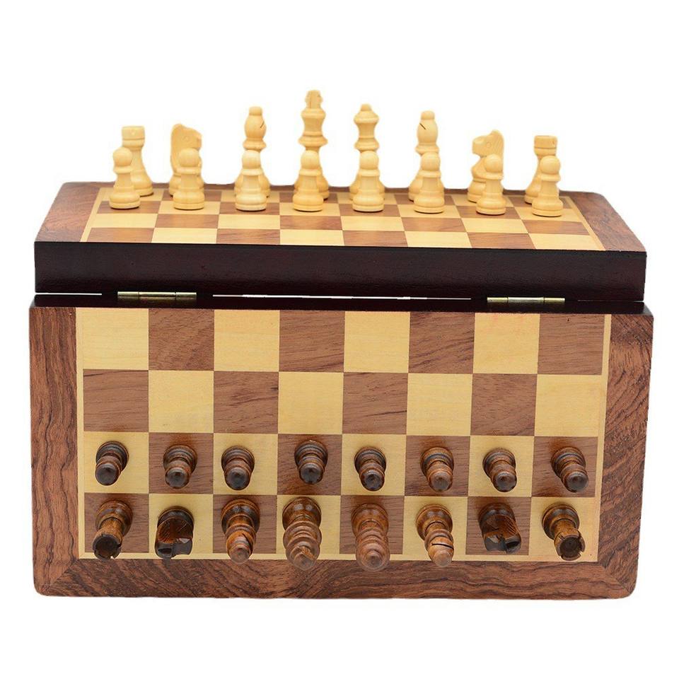 Jeu d'Échecs en Bois Portable Haut de Gamme et Éducatif avec Boîte de Rangement pour Divertissement Nomade des Enfants