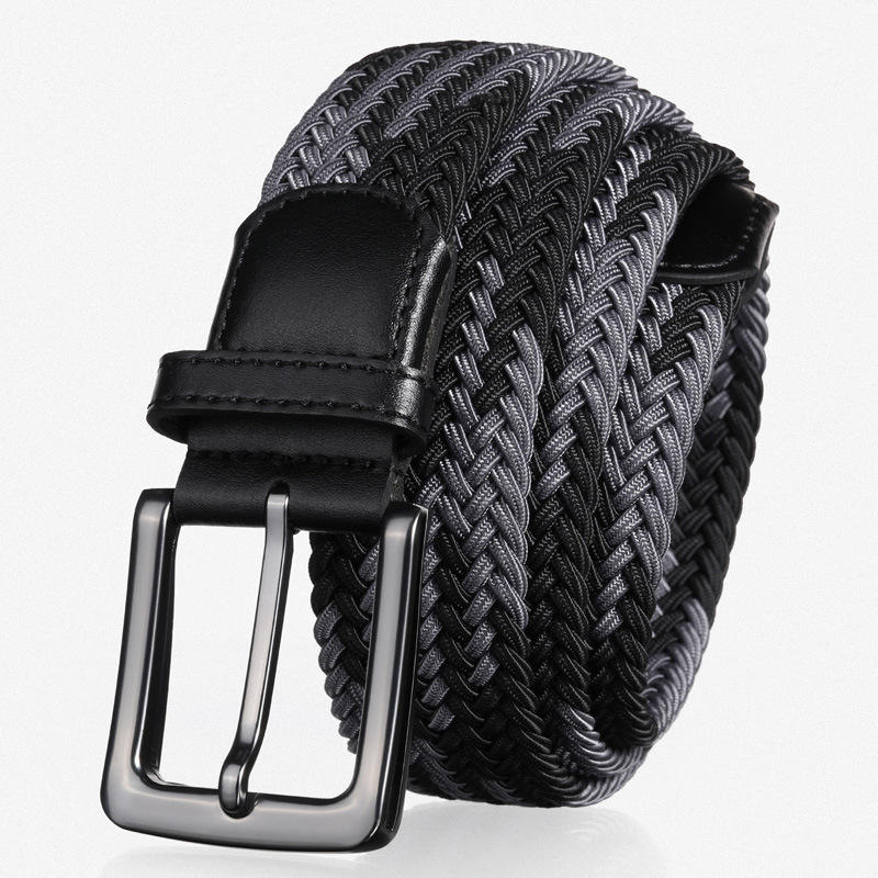 Ceinture de golf tressée élastique haut de gamme pour hommes et jeunes, 3,4 cm, boucle à ardillon professionnelle en alliage, en nylon tressé et en cuir