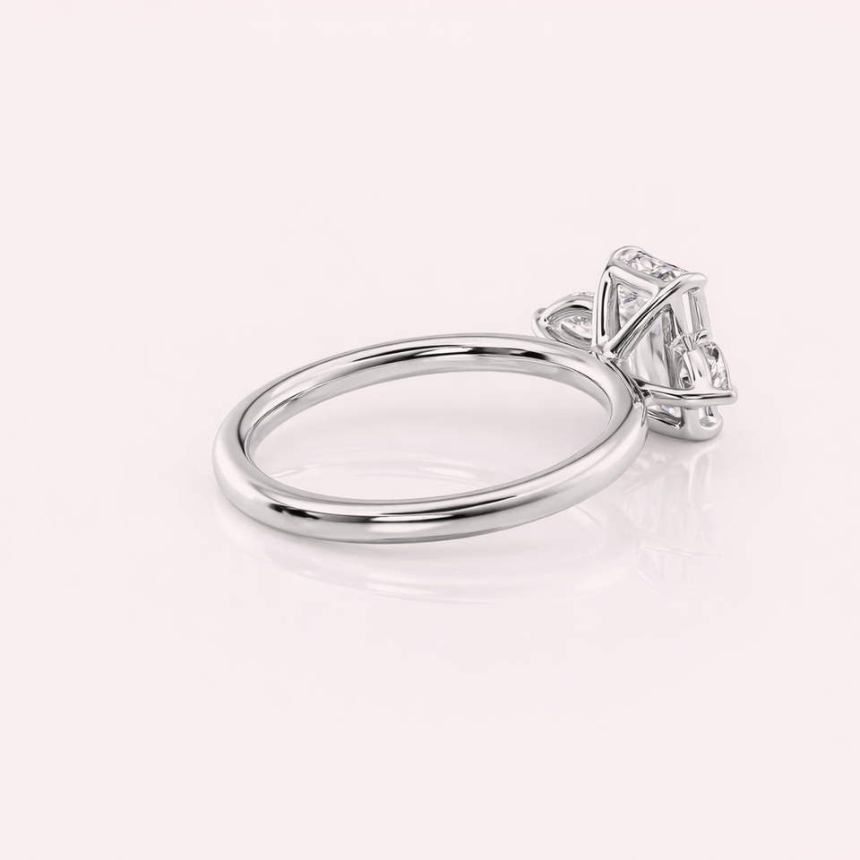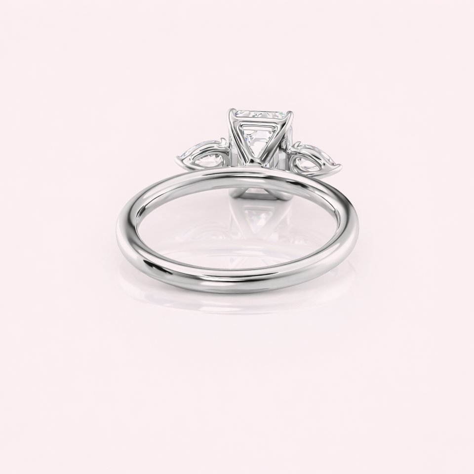 18K Yellow Gold Emerald Cut Lab Grown Diamond Three Stone Engagement Ring Manufacturer