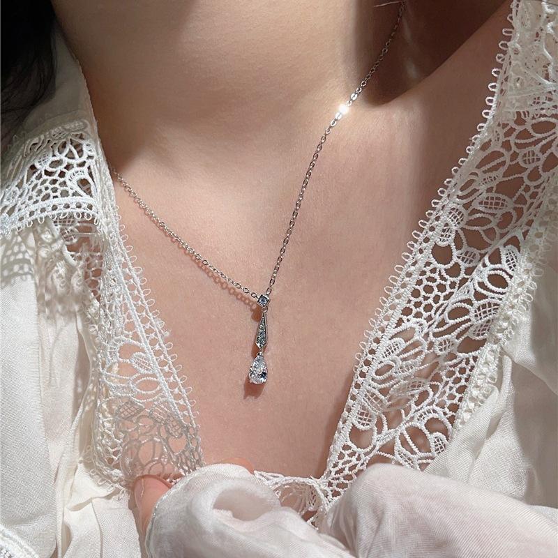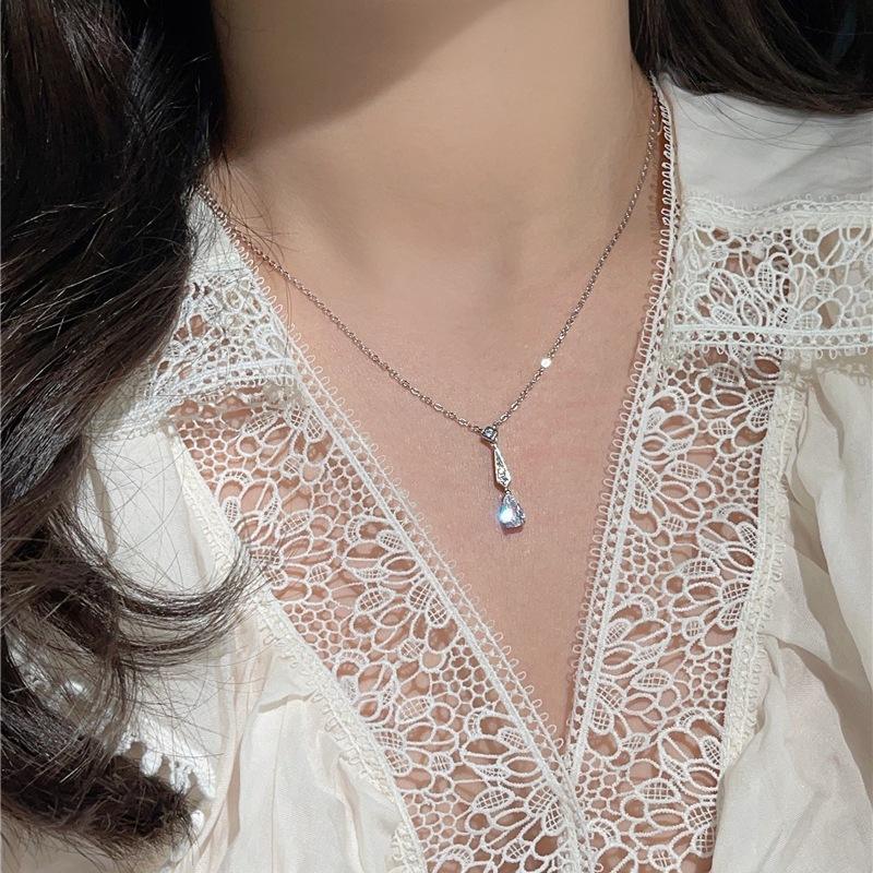 Collier de luxe en argent pur S925 bleu marine en forme d'œuf, orné de zircon et de diamants artificiels multicolores, motif œuf de pigeon