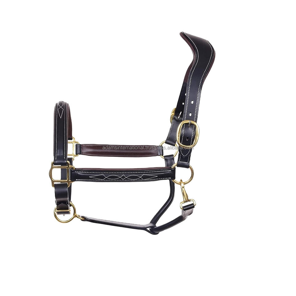 Licou de cheval haut de gamme en cuir anglais pour l'équitation avec coutures fantaisie, vente en gros