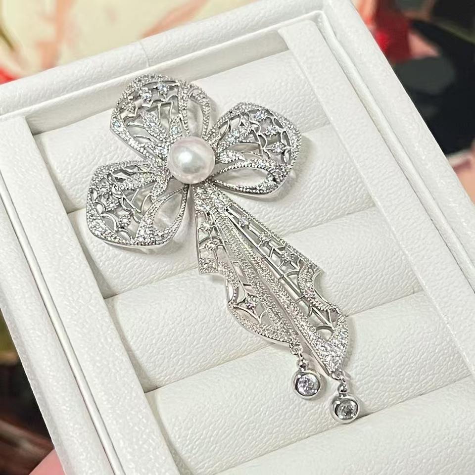 Broche de haute qualité, exquise, en perles et strass, nœud creux, accessoire de fleur de poitrine pour femme, pour vêtements, costume, vente en gros