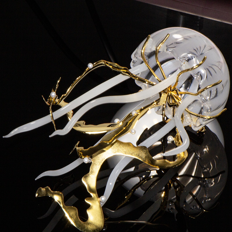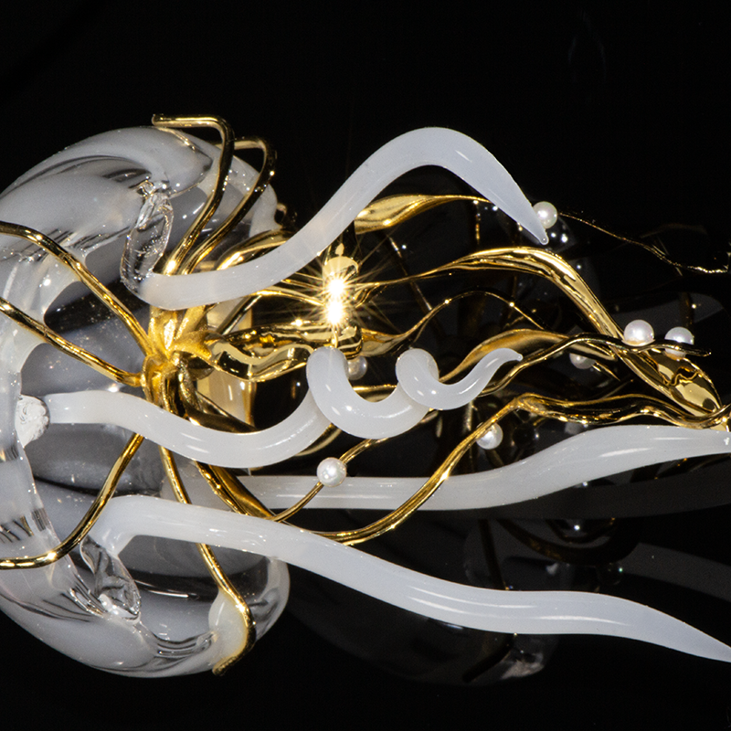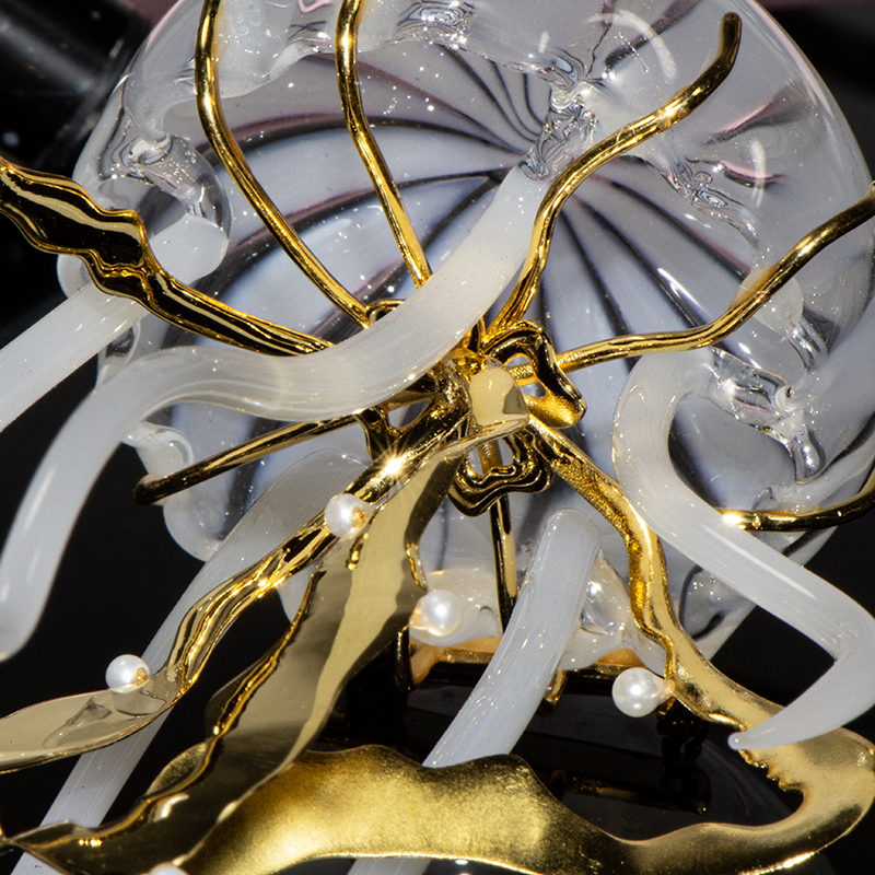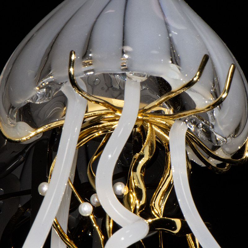 Bijoux fins haut de gamme luxe solide 14K or perle d'eau douce méduse émaillée pendentif en verre léger pour collier femmes hommes cadeau