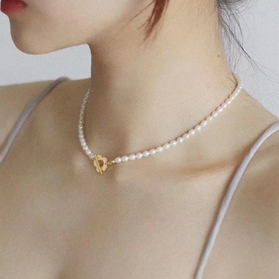 Collier pendentif fleur haut de gamme avec bouton de fleur de prunier, perle d'eau douce, perle de millet, grain de millet naturel, chaîne de clavicule