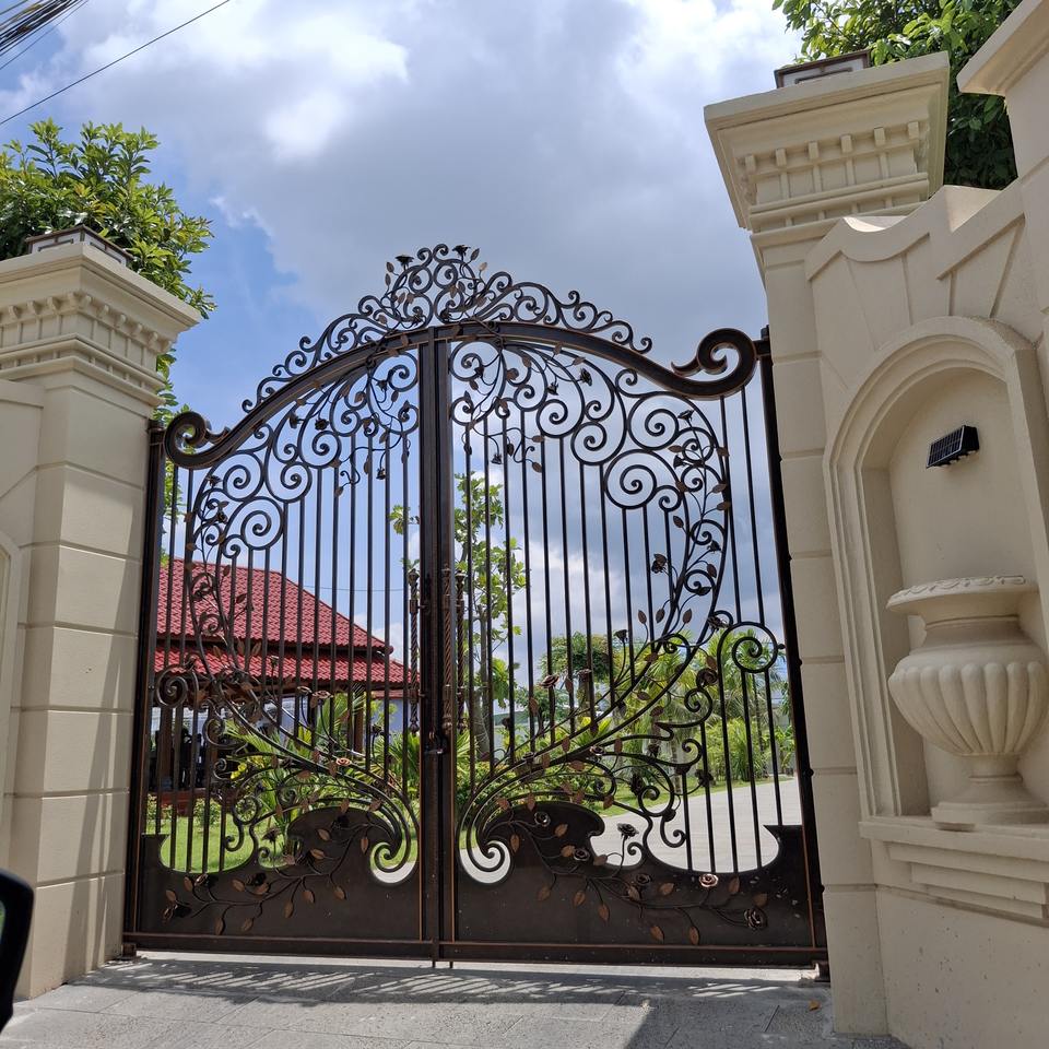 Porte en fer euro, portail français haut de gamme en acier, cadre en acier massif, revêtement en poudre, service de conception professionnelle, options de couleurs élégantes