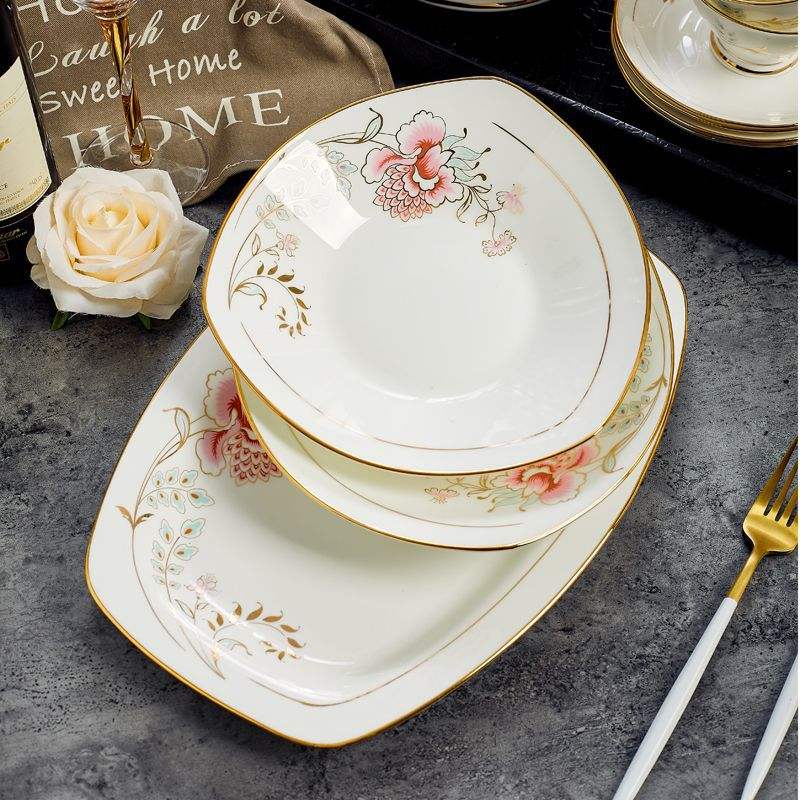 Ensembles de vaisselle en céramique avec appliques dorées haut de gamme Vaisselle en porcelaine de Chine osseuse exquise pour les fêtes Durable de haute qualité