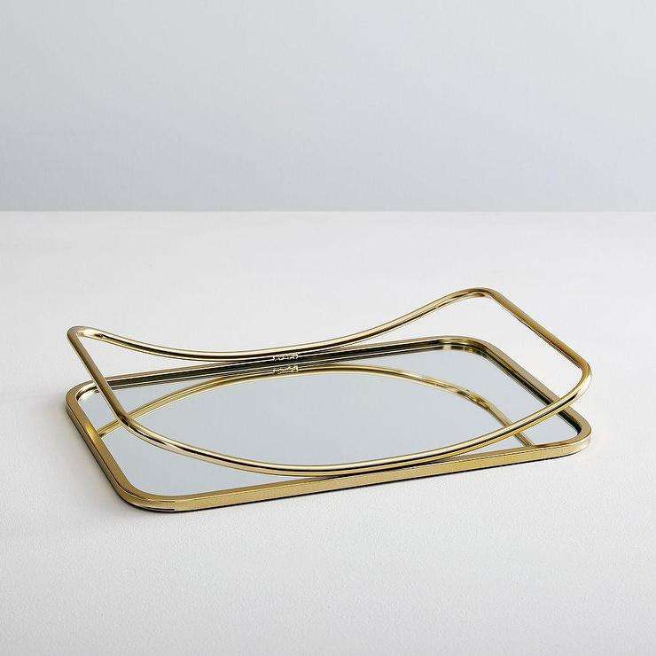 Plateau miroir de finition or haut de gamme pour parfum, plateau de service en métal rectangulaire d'approvisionnement d'usine pour bijoux et hospitalité