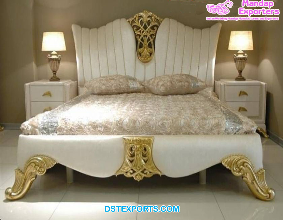 High End Golden Carved Wooden Bed & NightstandsProduct name