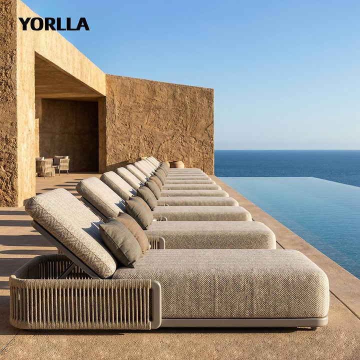 Chaise longue de piscine haut de gamme pour hôtel, mobilier de patio en tissu imperméable pour villa