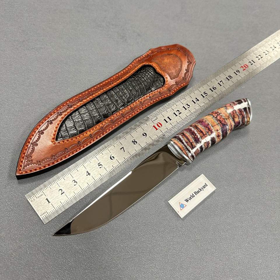 Couteau de chasse en acier M390 avec étui en cuir véritable délicat