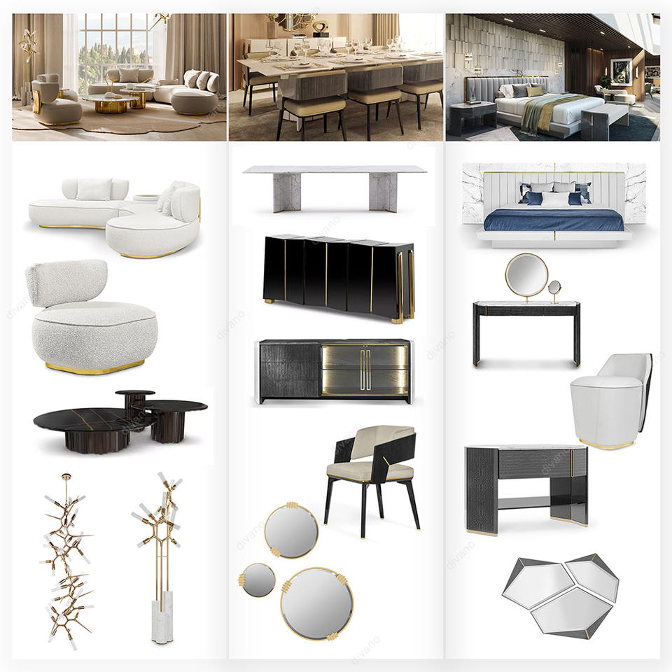 Ensemble de chambre à coucher haut de gamme italien pour hôtel, mobilier complet, ensembles de chambre à coucher modernes et luxueux, lit de luxe