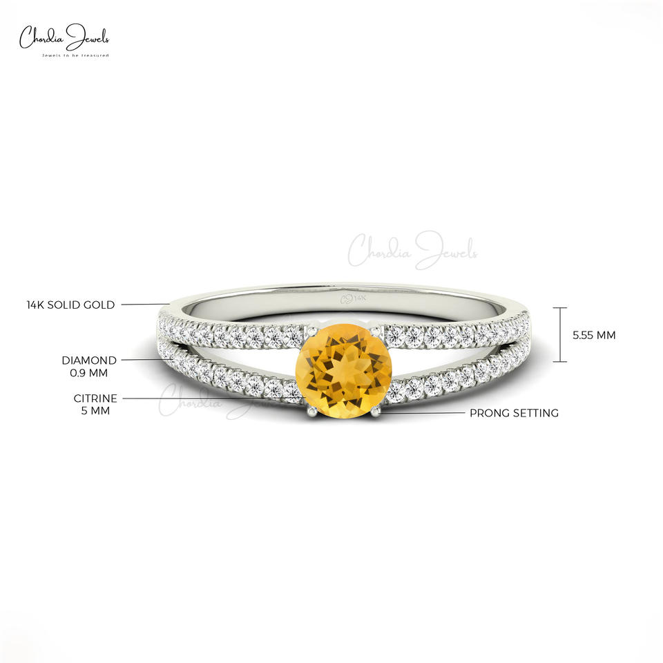 Bijoux haut de gamme 14k or massif minimaliste bague en diamant 5mm coupe ronde véritable Citrine Double tige bague en gros dames bijoux