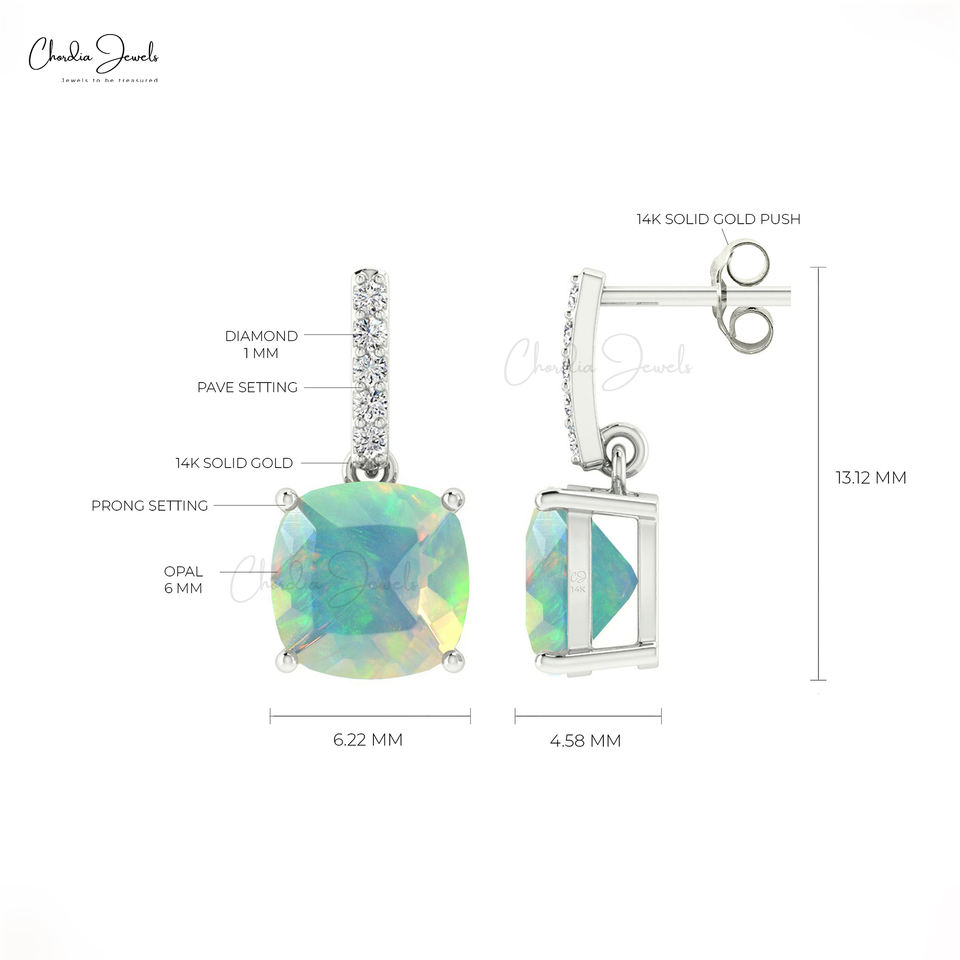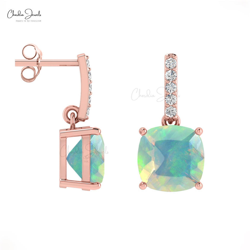 Bijoux haut de gamme 2.00TCW boucles d'oreilles en opale de feu naturelle 14k or massif diamant blanc cadeau de fiançailles à la mode