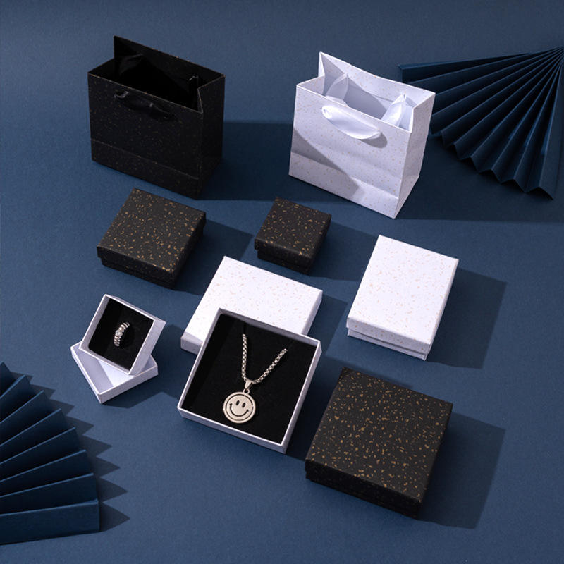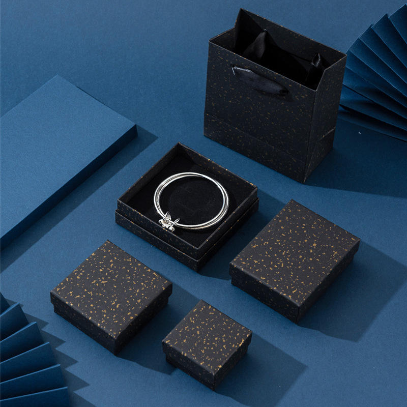 Boîte à bijoux haut de gamme avec couvercle supérieur et inférieur dorés, doublure en éponge, finition brillante, boîte d'emballage pour boucles d'oreilles, collier, bracelet