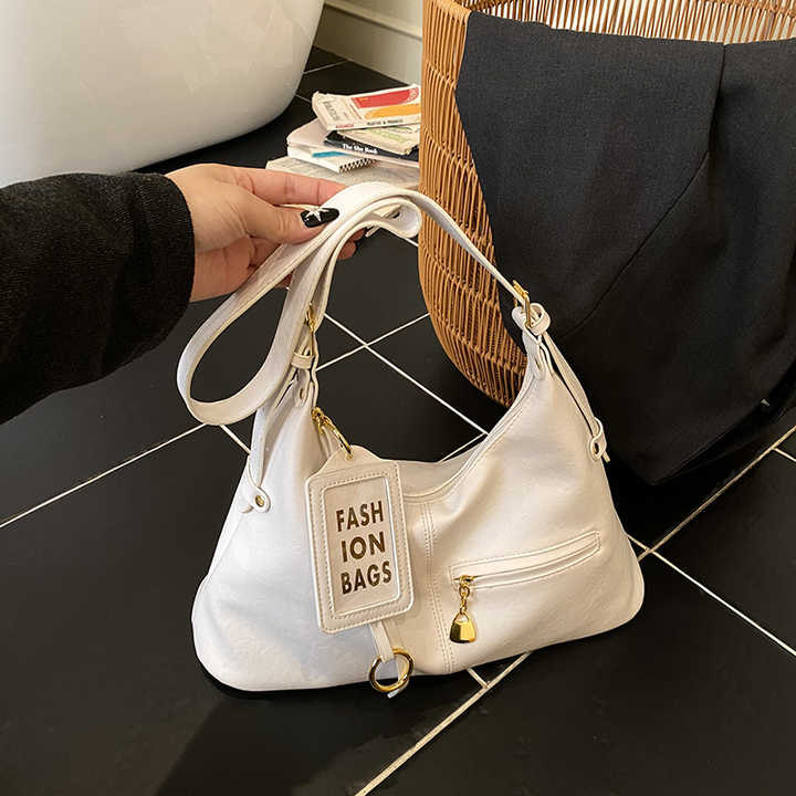 Sac fourre-tout haut de gamme pour femme, idéal pour les trajets quotidiens en automne, en PU, couleur unie, avec bandoulière, poignée unique, fermeture éclair et chaînes en polyester