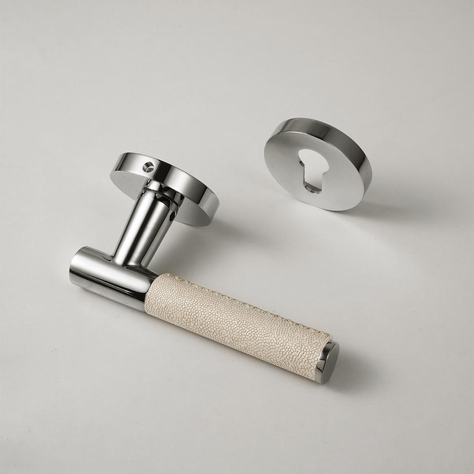 Poignée de porte haut de gamme en cuir chromé brillant PVD, levier en laiton massif pour villa de luxe, hôtel, serrure de porte intérieure en bois