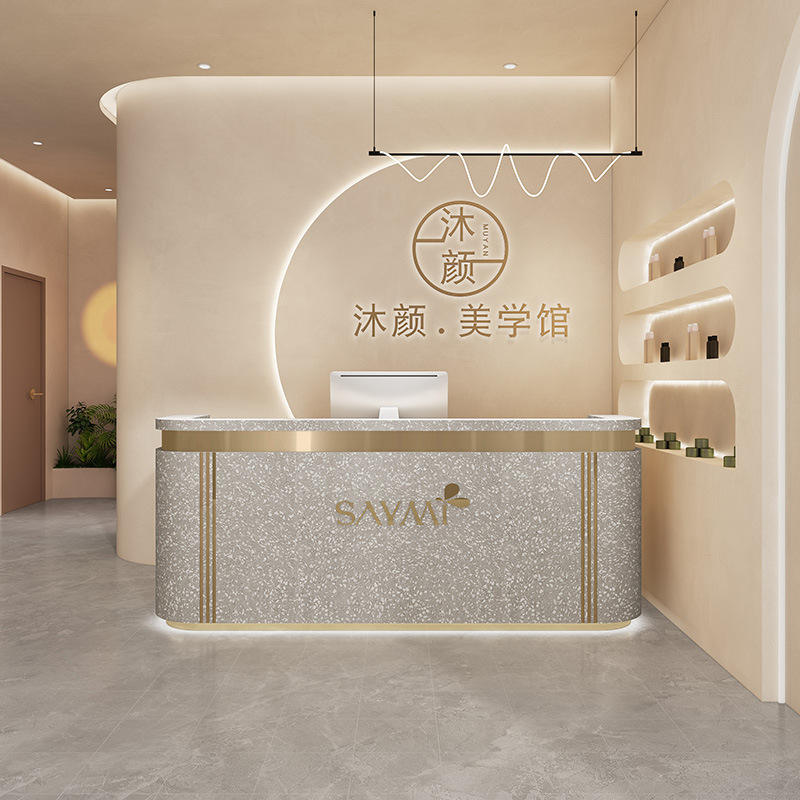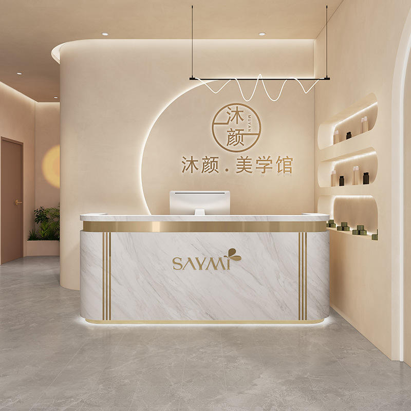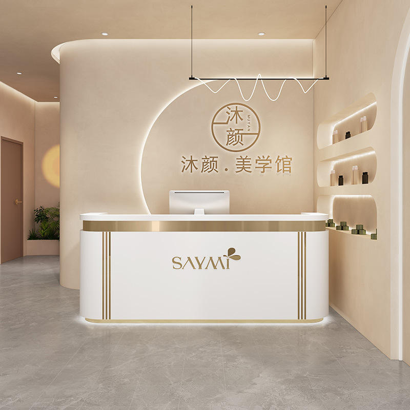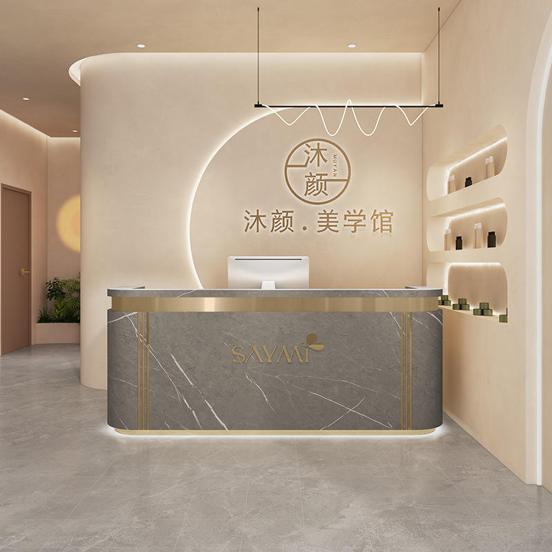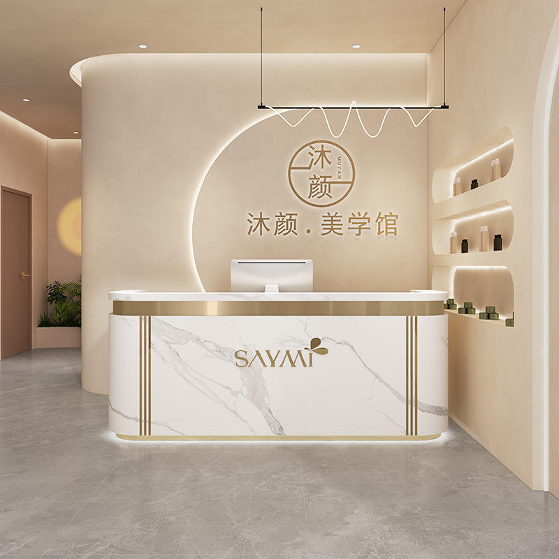 Comptoir de bar incurvé de luxe léger haut de gamme pour Salons de beauté Magasins de vêtements Cliniques dentaires Établissements de formation Bureaux de réception