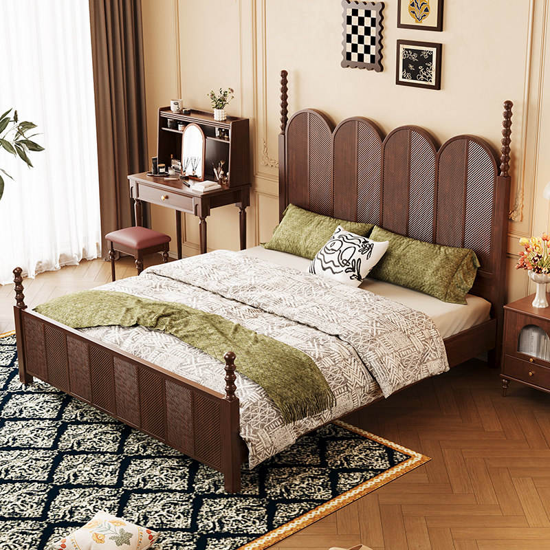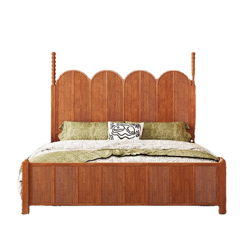 Lit en bois massif de luxe haut de gamme, style pour les personnes d'âge moyen, pour la chambre principale, taille double ou queen, design antique avec cadre de lit moelleux