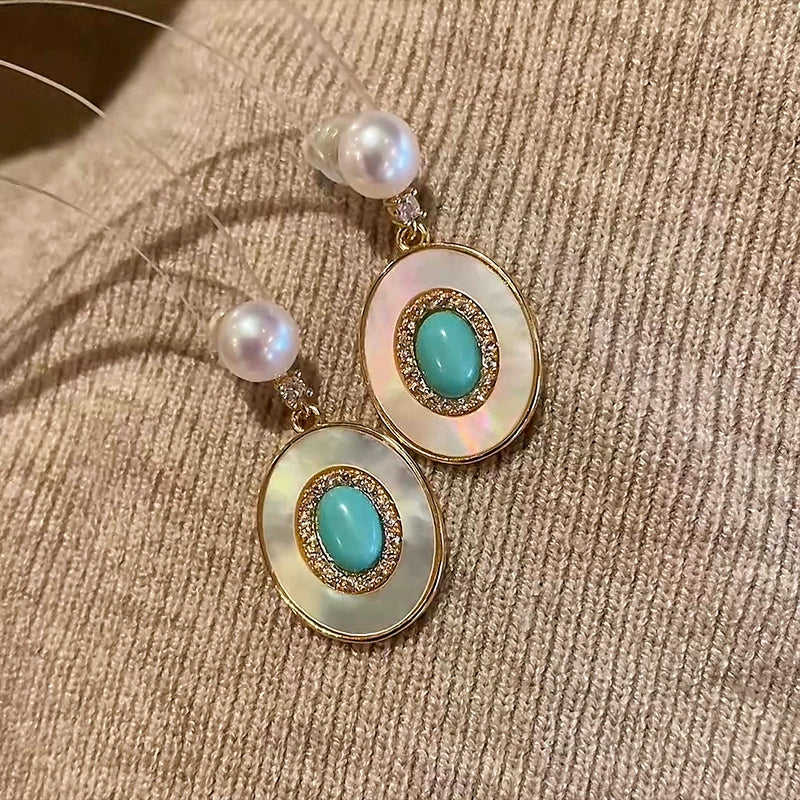 Boucles d'oreilles clous WENCHI haut de gamme, luxe léger, en perles naturelles turquoise, avec design tendance et tempérament exquis