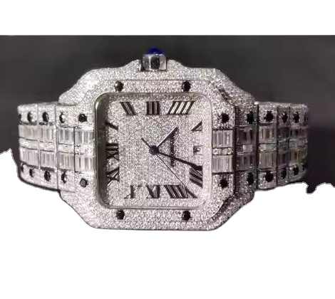 Design de luxe haut de gamme or VVS Moissanite acier inoxydable étanche unisexe laboratoire Baguette diamant plongeur classique Quartz poignet
