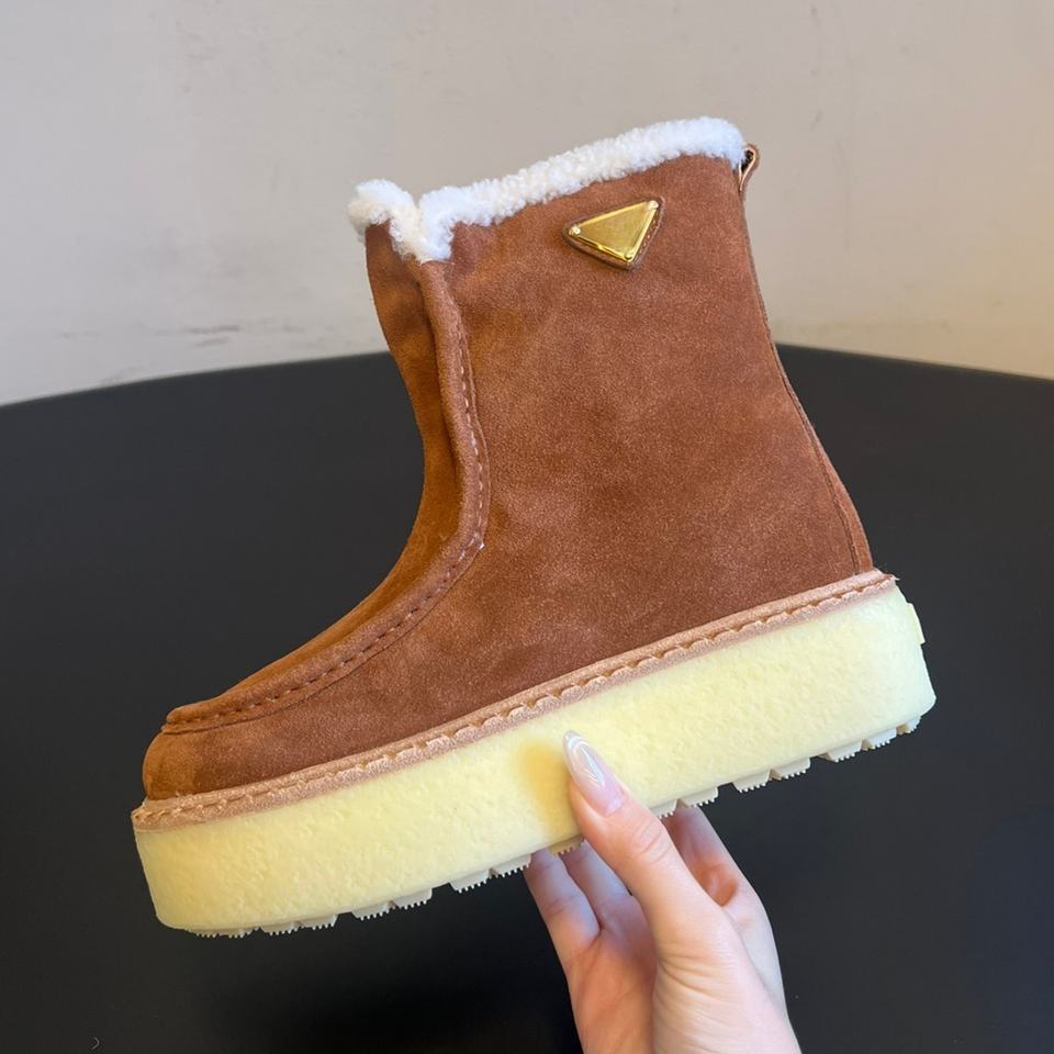 Bottes de neige de luxe haut de gamme de marque Pra, bottes à semelle épaisse, bottes à bout épais, sangle de fixation, bottes de neige pour semelle Oxford
