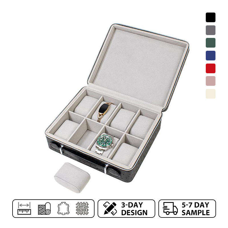 High End Luxury Multi-functional Larger Capacity 8 Slots Position Leather Watch Boxes with Velvet Portable Pillow for Storage