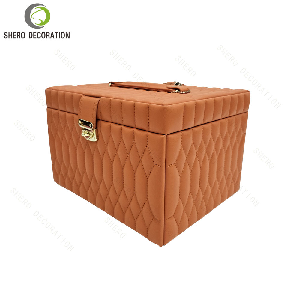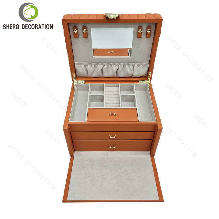 Boîte à bijoux vide de luxe haut de gamme en PU orange rouge, grande capacité, multi-niveaux, avec miroir, pour collectionner et ranger les bijoux