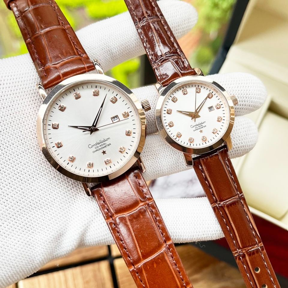 Montres pour homme et femme avec cadran noir, index des heures en diamant, affichage de la date, bracelet en cuir à motif crocodile, quartz Omegaes