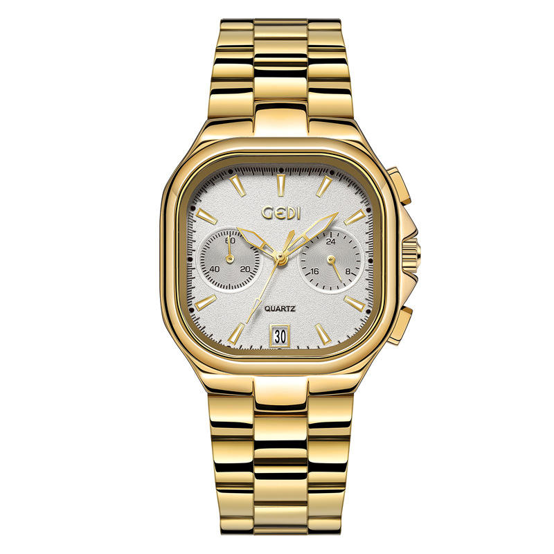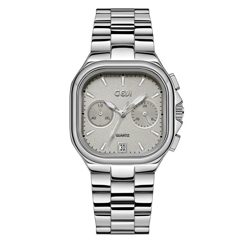 High-End Luxury Women's Quartz Watch with Niche Square Dial Calendar High-Value Steel Strap and Five-Pin Leather Band China