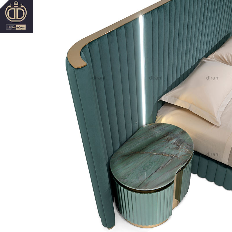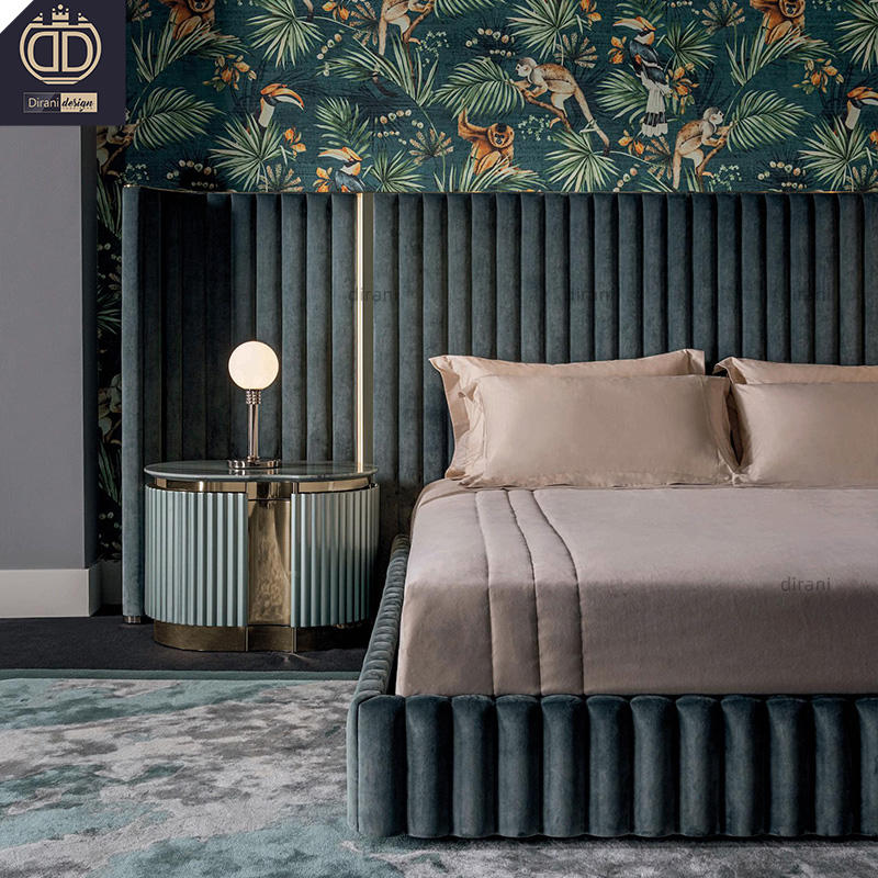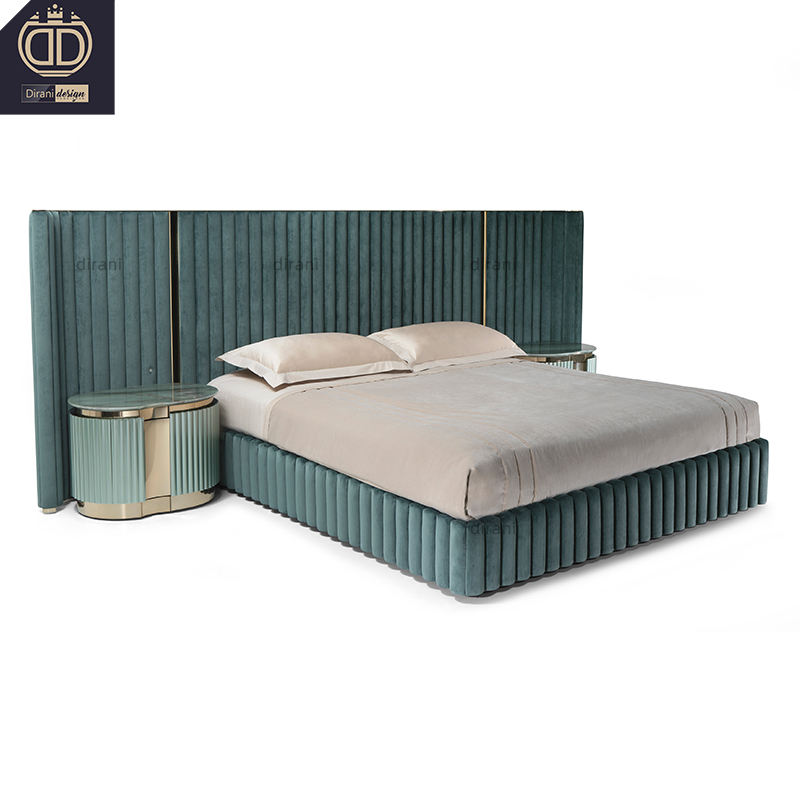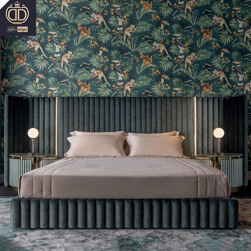 Très grands lits king size de luxe haut de gamme vert foncé double grande tête de lit lits à aile arrière avec grande tête de lit