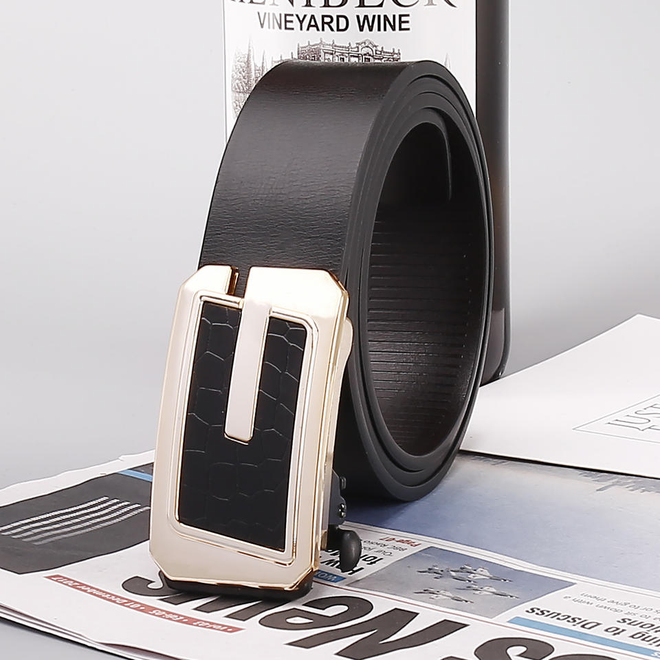 Ceinture en cuir de vachette véritable pour hommes haut de gamme avec plastique motif crocodile pour boucle fermeture automatique usure intérieure en stock