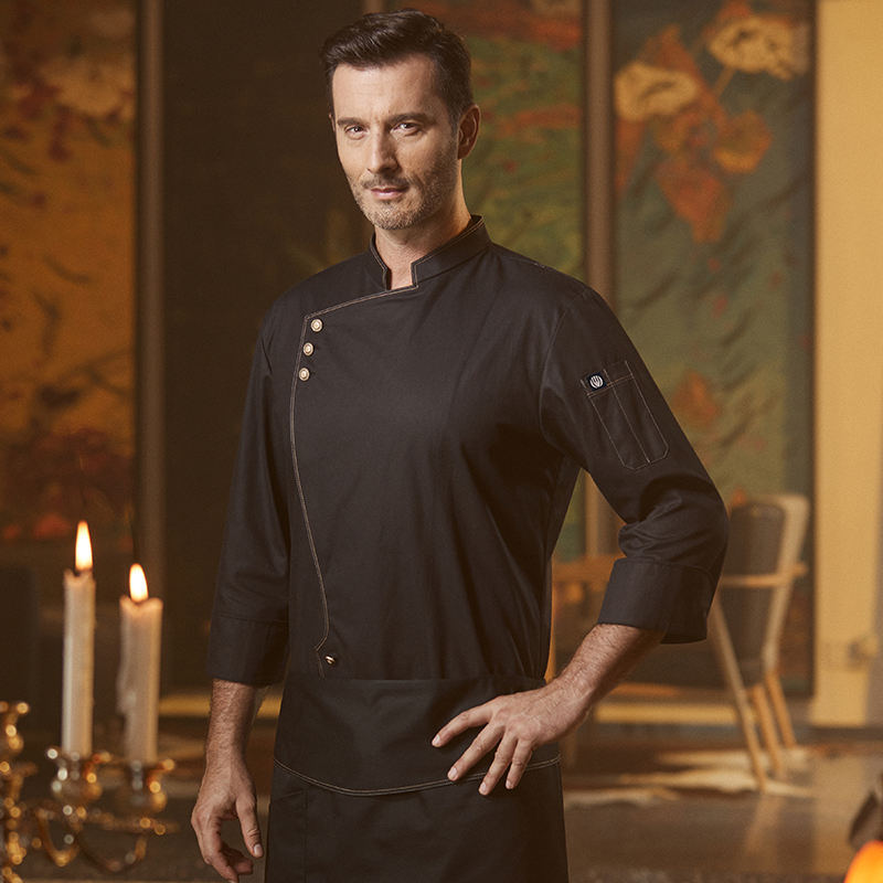 Vêtements de travail de chef en pur coton à manches longues pour hommes haut de gamme pour cuisiner pour les hôtels et les restaurants