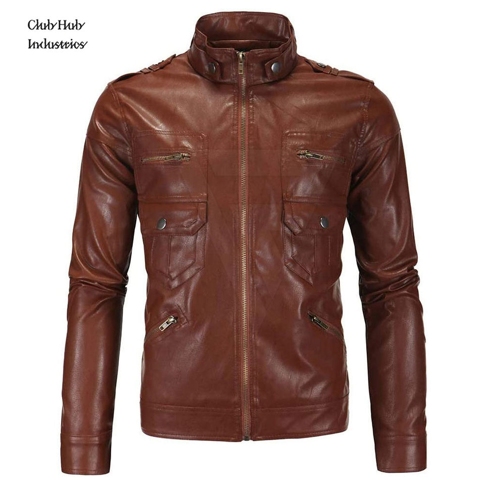 Veste en cuir haut de gamme pour homme, col montant, style tendance, collection hiver, qualité supérieure, boutique