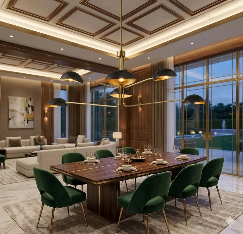 Lustre dôme multi-bras haut de gamme de style moderne du milieu du siècle, luminaire suspendu de luxe de l'ère spatiale pour salon et salle à manger